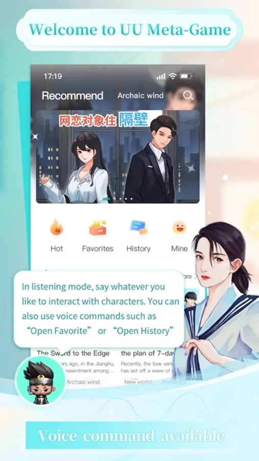 Want to be the master of the novel world? Want to experience the life without any limitation? Come to UU Meta-Game, let your imagination free and enjoy the pleasure of interaction . We combine AI voice interaction with audio books to make you the protagonist of the novel, talking freely with characters in the story, and experiencing the ups and downs of different lives. Each choice you make may affect the plot in the future. UU Meta-Game collects many high-quality interactive novels, including ancient style crossing, stimulation and adventure, leisure healing, life counterattack, chivalrous tenderness, and romance, all of which are dominated by you, giving you an unprecedented immersive experience.