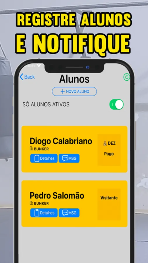 Pelo aplicativo você pode mandar uma mensagem direta para seu aluno ou para todos os alunos que confirmaram presença na aula, dessa forma você não precisa colocar mensagens em grupos de whatsapp e ficar torcendo que a mensagem se perca no bate-papo dos grupos.