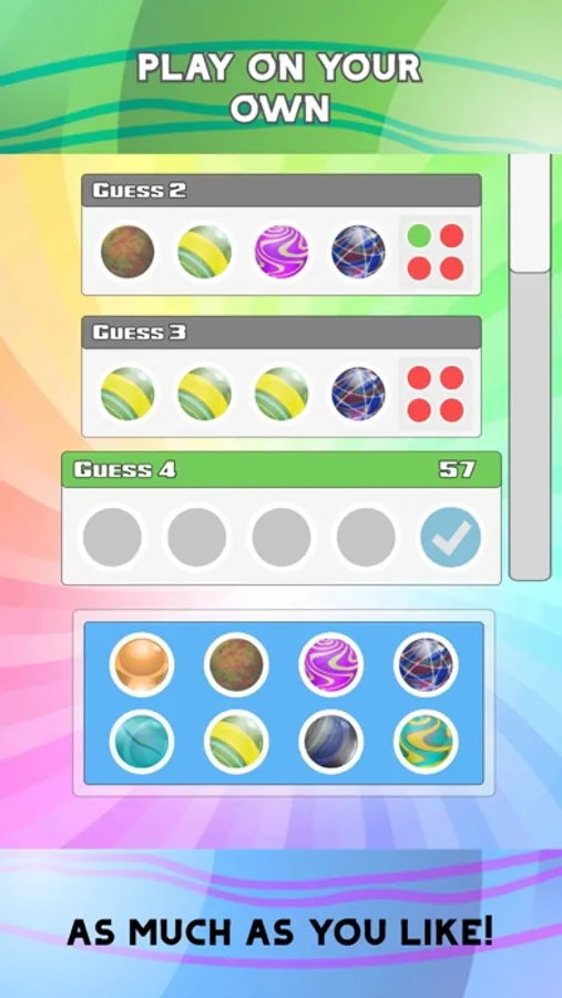 Mib Buster is a fun but challenging puzzle game where you use your deduction skills to determine the correct sting of marbles that make up the secret code! You can play on your own against your phone, or you can set up your own private room and play with a friend! Your phone can send you notifications (if you allow it) to let you know when a friend wants to play. You can earn tickets while you play and these tickets the rewards you can use to trade for marbles in the Mib Store! Grow your marble collection and show them off while you play! Your friends may want to trade you for the best looking ones!