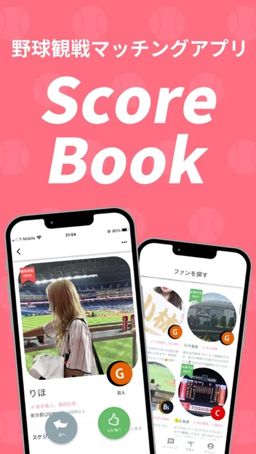 ScoreBookは野球ファン同士を繋げる野球観戦マッチングアプリです。