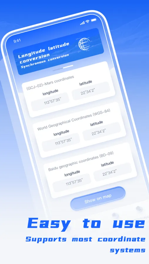 - It is simple to use, supports most coordinate systems, and realizes the conversion between different longitude and latitude coordinate units;