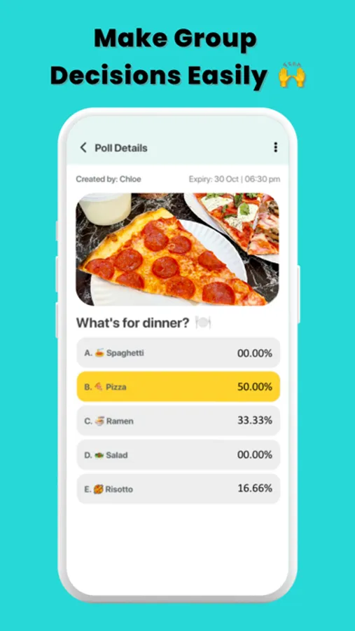 - Poll - Make group decisions quicker by using this feature in the Chatroom.
