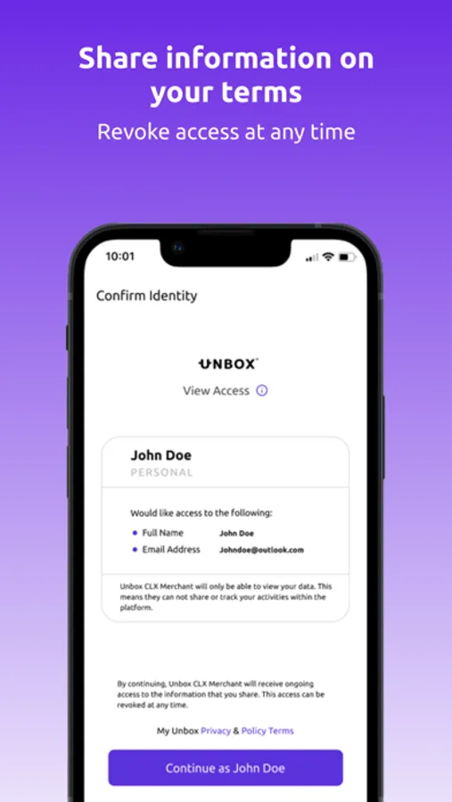 MyUnbox is a blockchain-based Identity management tool, allowing you to securely log in to third-parties without having to store any passwords. Take control of your data and revoke access to third parties at any time.