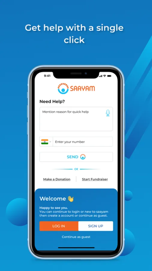 Saayam is the first app which allows Non-profit to register in Saayam & allowing them to create a