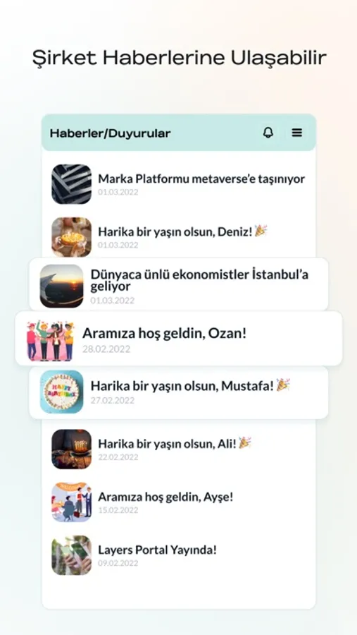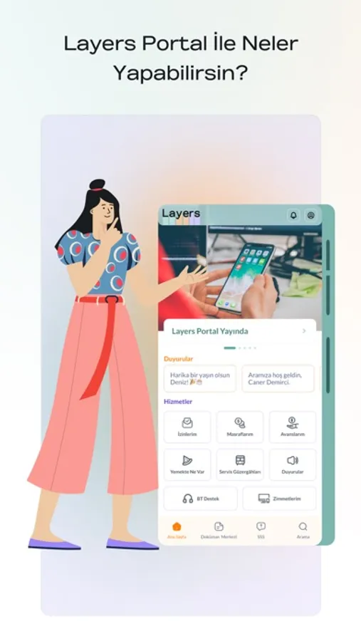 Layers portal, içerisinde barındırdığı onlarca modülden şirketinizin ihtiyacı olan modülleri seçerek isteğe bağlı olarak sizin için özel kullanıcı dostu arayüz tasarımı ile hem mobil hem de web tarafında sunulan,şirkete özel süreçlerin yürütüldüğü, istenilen bilgi ve belgelerin yayınlanabildiği bir mobil uygulamadır.