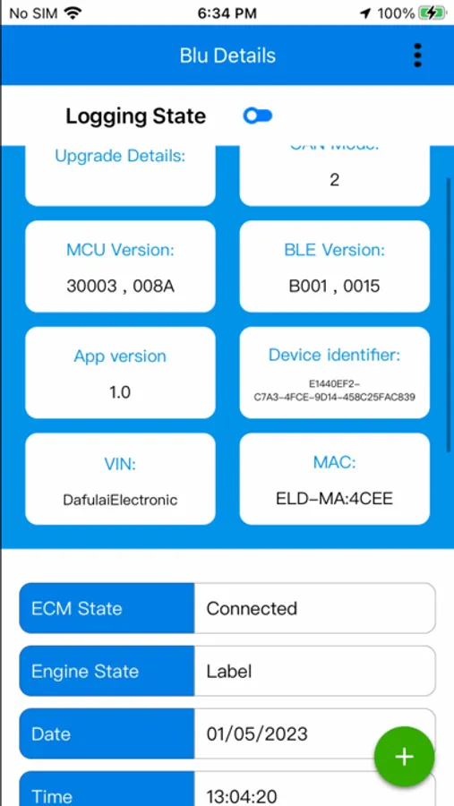 - Display ECU values including vin, odometer, ignition state, speed, engine hours