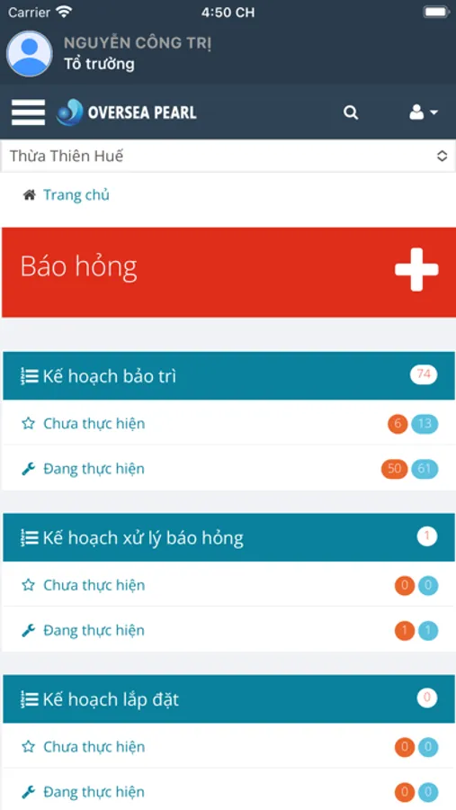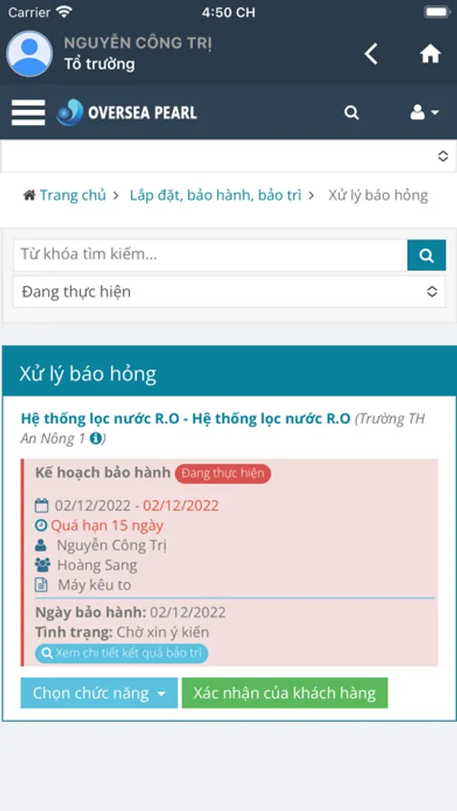 - Cập nhật xử lý báo hỏng nhận từ khách hàng để xử lý.