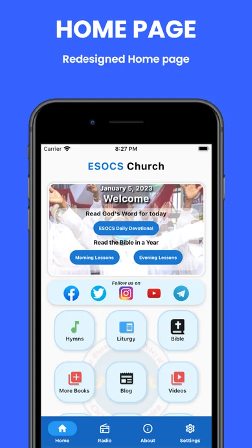 The ESOCS Church App is a Mobile Application for use by members of the Eternal Sacred Order of the Cherubim and Seraphim (ESOCS) Church. The main aim of the applications is to enable members of the church access several publications used in the church, study the word of God and keep abreast with the events in the Church irrespective of their location. Below are the major features of the application;