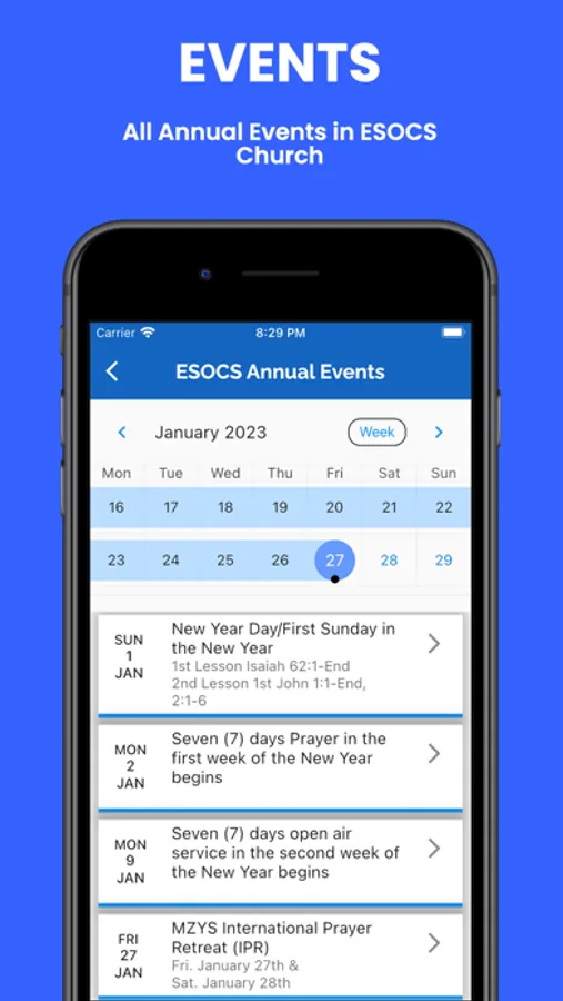 -ESOCS Daily Devotionals: It gives users access to the complete ESOCS daily devotionals for the every month.