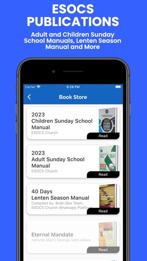 -More books: This section contains various ESOCS publications like Adult and Children Sunday School Manuals, etc