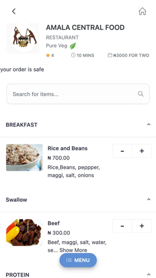 Customers have a view of current food information: Menu, name of meals ,food image, price, food description through wide range of restaurants at the comfort of their homes. Jije application shows customers total cost of meal, food processing, rider's name when an order is being placed.