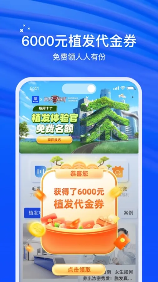 现在下载雍禾植发APP,立即领取6000元植发券,人人有份!