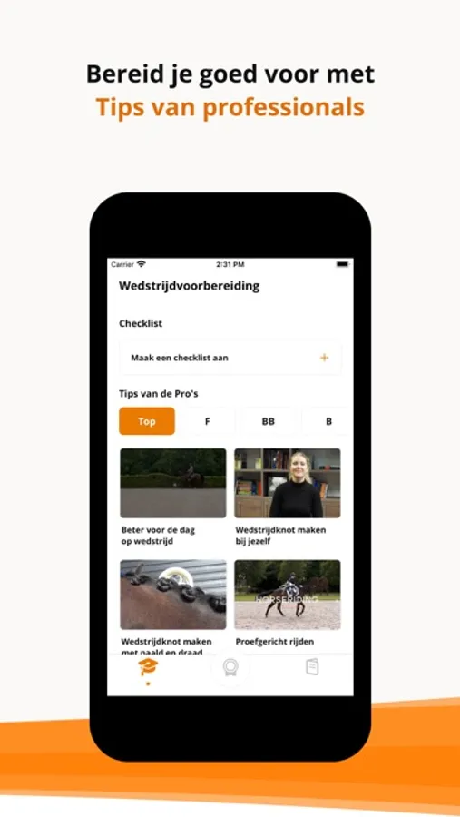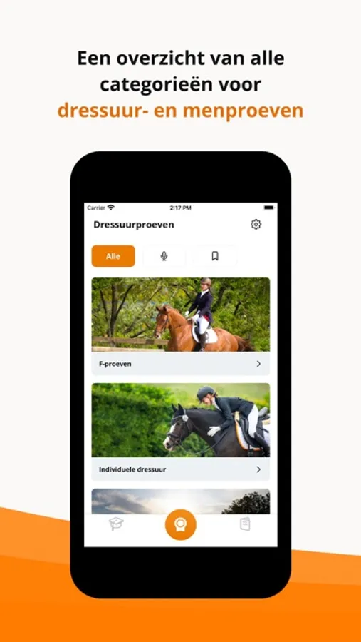 De KNHS Dressuurproeven app is de ideale tool voor iedereen die dressuurproeven rijdt. Je vindt er alle proeven uit het proevenboekje in terug en alle FNRS proeven. Bekijk de proeven met commentaar van juryleden (m.u.v de Bixieproeven, Kür op muziek en Jonge paarden proeven) en gebruik de video’s met tips voor oefeningen per klasse om je optimaal voor te bereiden op jouw wedstrijd.
