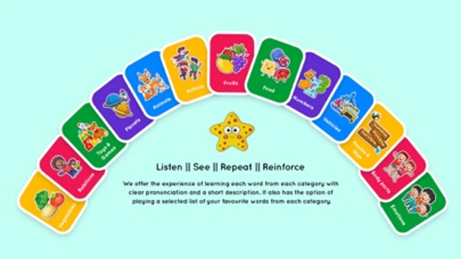 This app is created under the guidance of expert speech language pathologists, to help your child practice various words and pronunciations. Categories like animals, fruits, vegetables, food, actions, emotions, body parts, colors, shapes, numbers, items found at home, items found at school, planets, days, months, and many more are available in the Speech basics app. We offer the experience of learning each word from each category with clear pronunciation and a short description. It also has the option of playing a selected list of your favourite words from each category.
