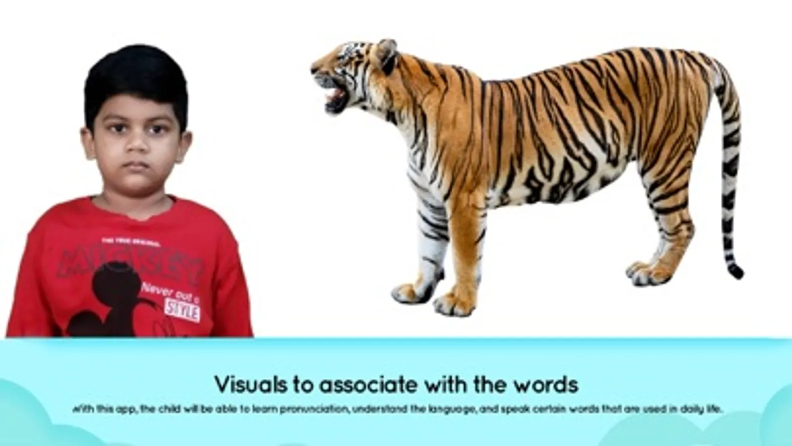With this app, the child will be able to learn pronunciation, understand the language, and speak certain words that are used in daily life. The child will be able to recognize the words and phrases spoken by others, can understand the meaning of words, and can associate the object and its name.