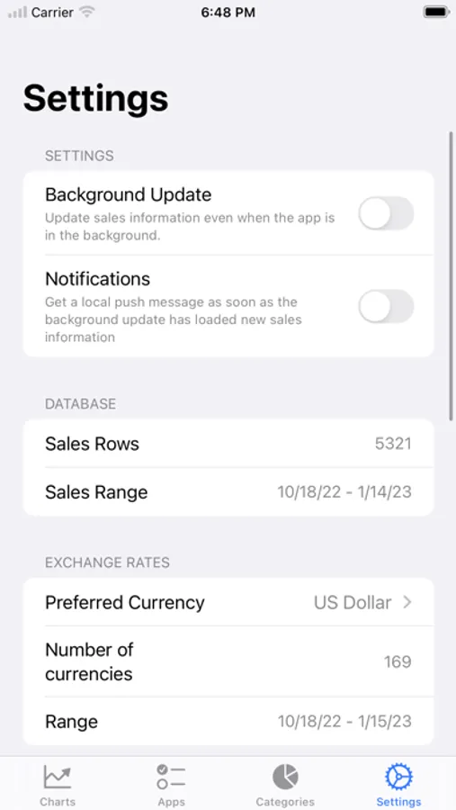 This app helps you keep track of your app downloads and proceeds. The app can retrieve the latest sales information in the background and send you a notification as soon as the information is available. For this purpose, the app uses the official App Store Connect REST API.