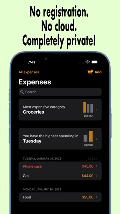 Take control of your finances with Hajz Spending Tracker - the ultimate privacy-focused expense tracker. No accounts or registration required, all data is stored on your device. With easy-to-use interface, configurable charts, and both light and dark mode options, tracking your expenses has never been easier. Stay organized by dividing expenses into categories and gain insights into your spending habits with Hajz Spending Tracker. Download now and start managing your finances with confidence.