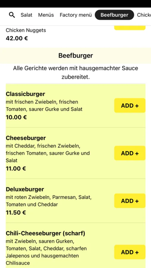 Mit der Burger und Pommes Factory Mobile App können leckeres Gericht bequem von zu Hause aus genießen. Stöbern Sie in unserer Speisekarte, wählen Sie die Gerichte aus, die Ihnen schmecken, und geben Sie Ihre Bestellung in Sekundenschnelle auf.