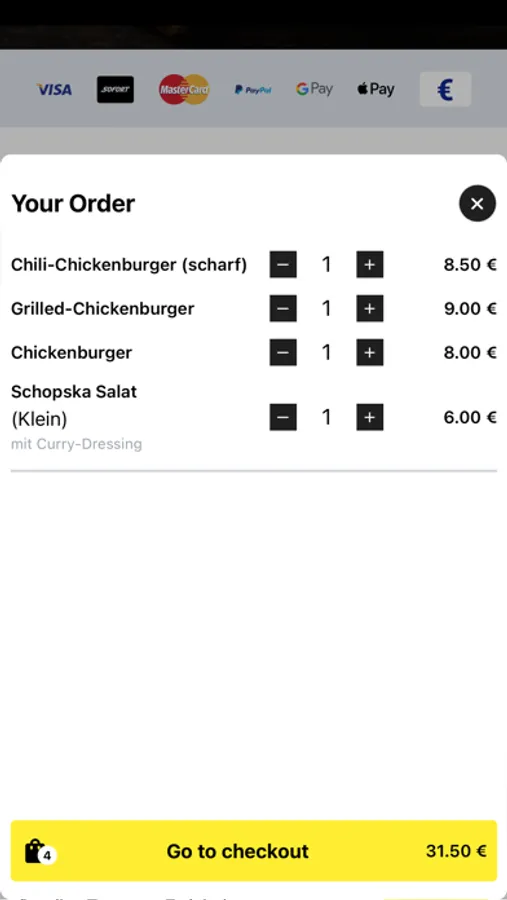 - Durchsuchen Sie die Speisekarte des Restaurants und sehen Sie sich alle anpassbaren Optionen im Voraus an