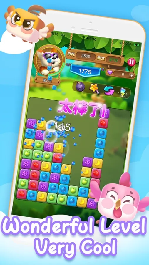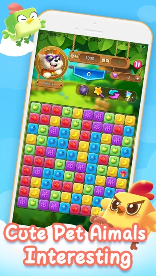 This is a puzzle casual application, suitable for players of different ages to play, here to take cartoon animal characters, you can choose freely, different levels have different colors of fruit squares.