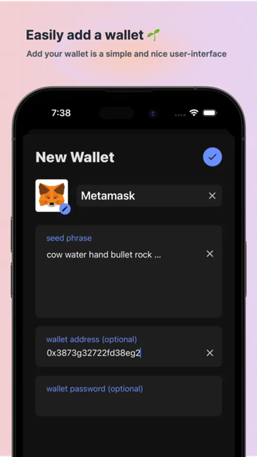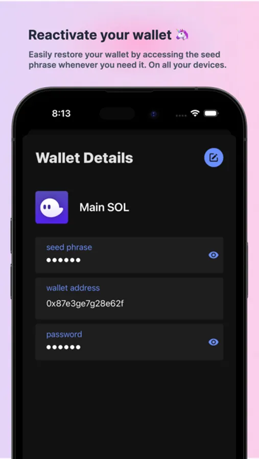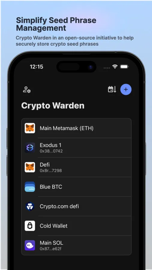 Crypto Warden allows you to securely store your non-custodial wallet seed phrases in your iCloud Keychain to never lose them and keep them accessible in case of need.