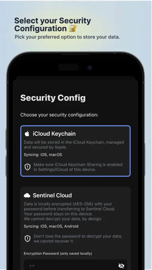 We rely on the iCloud Keychain to guarantee the state of art security systems provided by Apple while making the user experience the best possible: