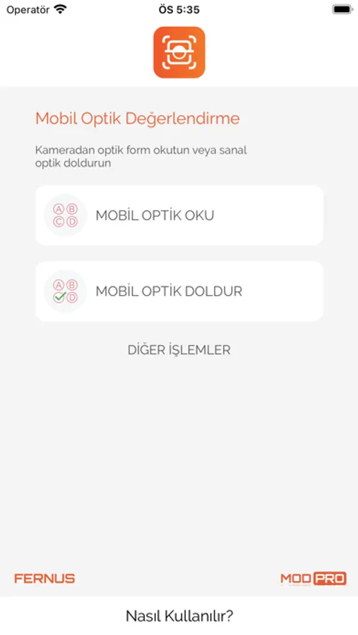 ■ Mobil Optik Değerlendirme uygulaması MOD-PRO'yu açın. Formunuzu okutun.