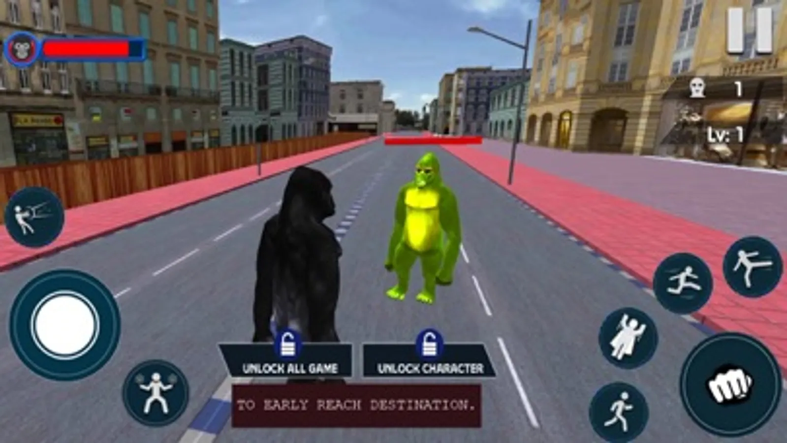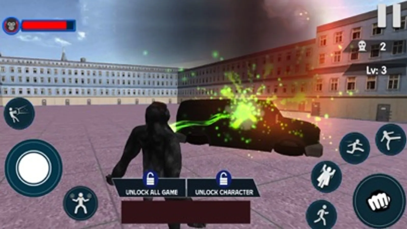 The angry gorilla city attack game is in rage because of the gorilla dinosaur fight and it seems impossible to stop the angry gorilla from attacking the city of the gorilla game. Gorillas attack the city and smash vehicles, destroying buildings, and crushing everything that is coming on their way in this gorilla city rampage