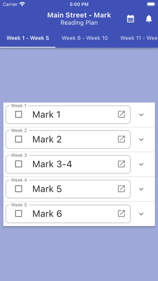Main Street - Mark is a reading plan app to help keep you on track in reading through the book of Mark over a period of 14 weeks.
