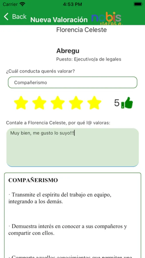 Porque creemos firmemente, que entre Todos podemos hacer la Diferencia, creamos este software de valoración positiva, para que todos los integrantes de la Organización, pueden desde su celular aportar a cualquier otro integrante, en forma anónimaEsta herramienta, muy simple y sumamente poderosa fue pensada y diseñada para la Valoración Positiva, como la mejor manera de sumarnos Valor entre todos.Permite el reconocimiento entre todos los integrantes, lo que es clave para nuestro desarrollo personal; además de hacer visibles las buenas conductas, que muchas veces pasan desapercibidas.