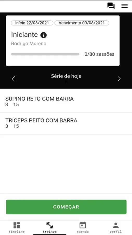 - Acesse seus TREINOS: informações sobre os exercícios, cargas, repetições, dicas de execução e vencimento do treino. Consulte também sua avaliação física sempre que quiser.