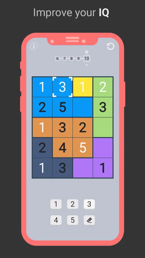 Relax while training your brain in this minimalist puzzle game. Fill the grid with numbers that can appear only once in each area. It is more complex than it looks, give it a try and let us know if you like it!