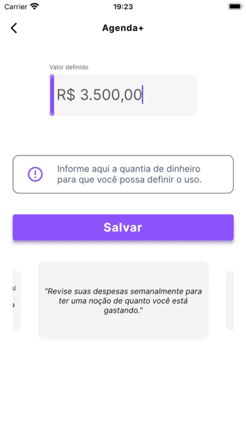 permite decidir como gastar o dinheiro que você ganha. Além do relatório de gastos, o App também te avisa para não esquecer de pagar as contas.