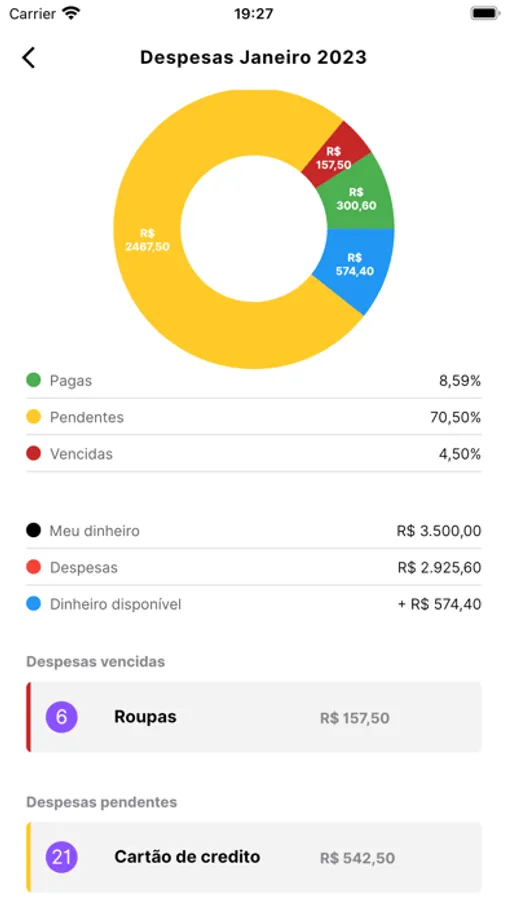 O App mostrará os detalhes em um Gráfico de Pizza.