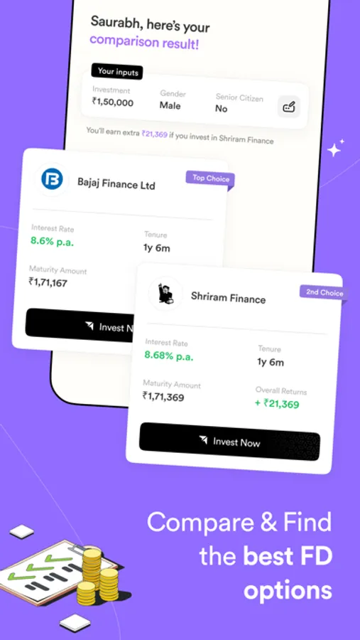 • FD Comparison - Compare 200+ Fixed Deposits and choose one based on your goals.