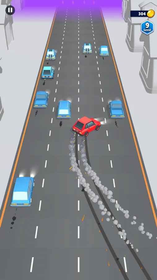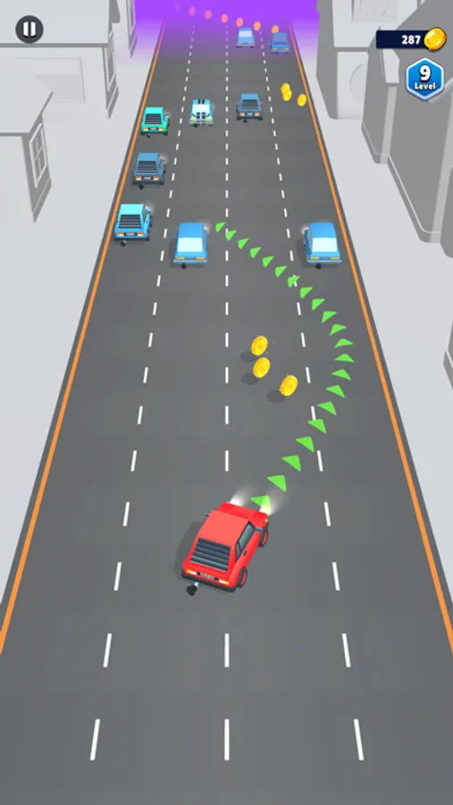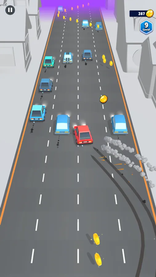 Determine the angle that the car will drift, collect the coins, reach the finish without hitting other cars and win the game!