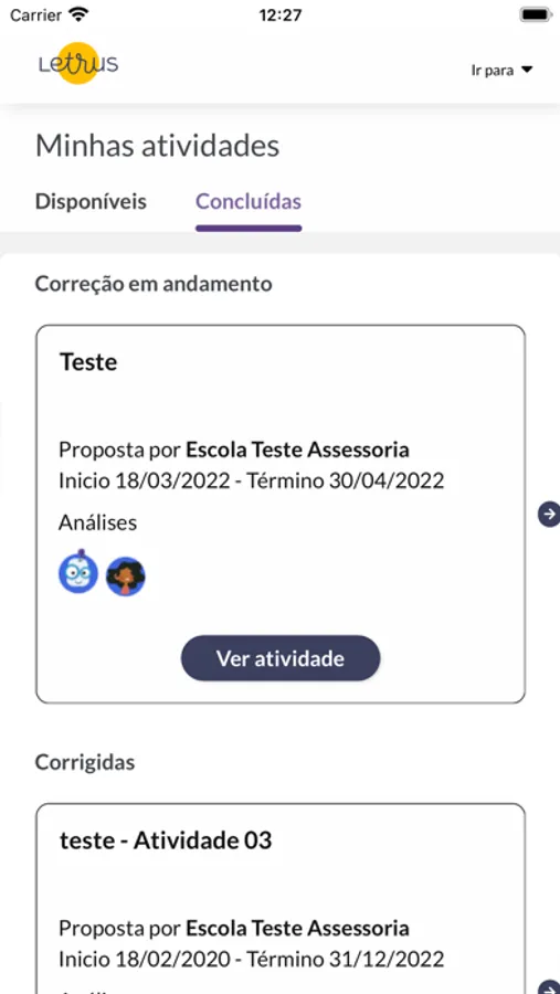 O app é acessível apenas para estudantes de escolas que utilizam o Programa Letrus.