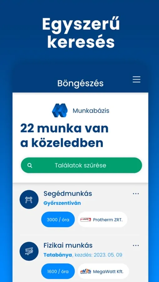 A MunkaBázis Magyarország legújabb munkaportálja. Külön felülettel a munkavállalóknak és munkaadónak, egyszerű kezelhetőségével érthető és gyors a használata. A meghirdetett munkákra külön listában vezetjük a jelentkezőket, akiket 2 kattintás elérni. Munkavállalóként egy-egy cég összes állásajánlatát láthatod listázva, de ha nincs Neked megfelelő szabad pozíció kedvenc cégednél, akkor az "Ajánlom magam" gombbal a cég figyelmébe tudod magad ajánlani!