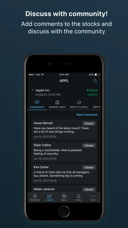 Our advanced terminal includes Level 1 and level 2 data, historical financials, analyst ratings, valuation metrics, watchlist monitoring and research, options activity , and tons more.