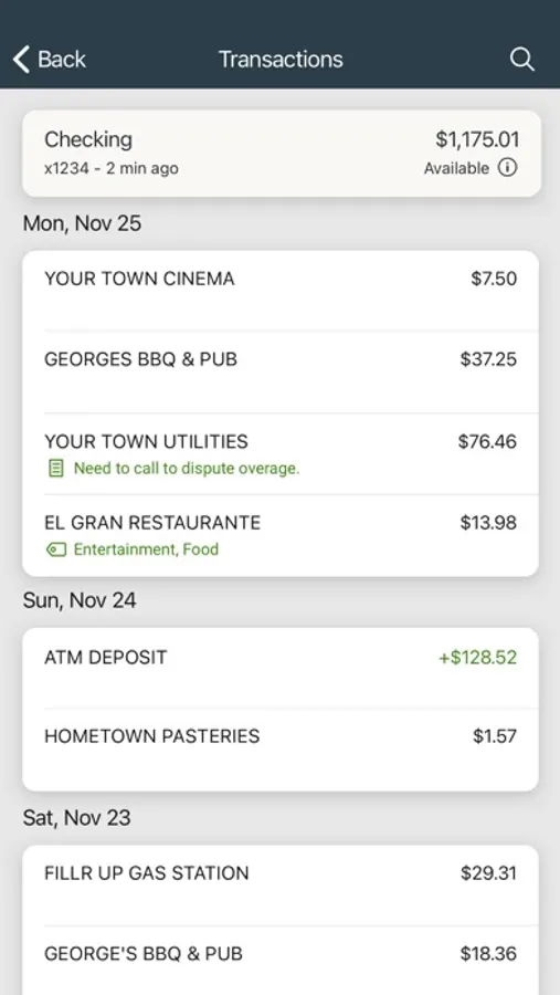 • Keep your transactions organized by allowing you to add tags, notes and photos of receipts and checks.