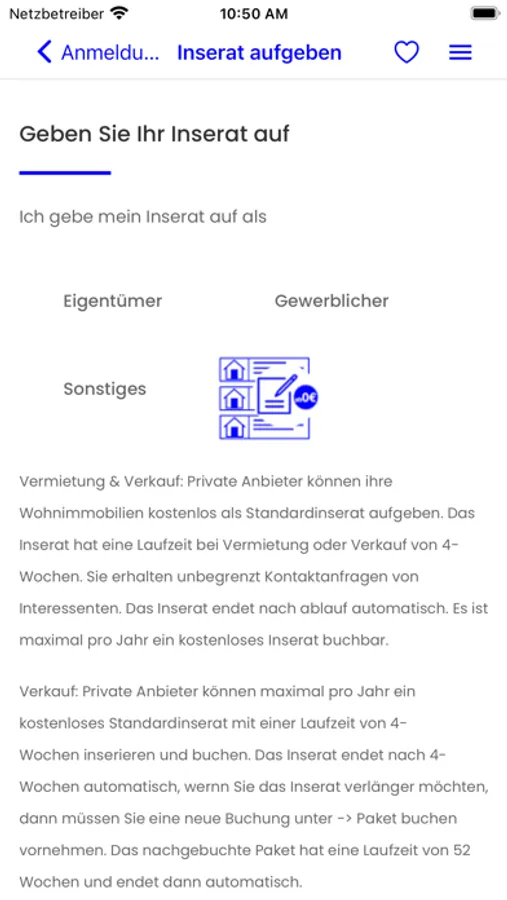 Im Inserat können Sie den jeweiligen Anbieter der Immobilie kontaktieren