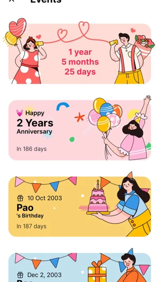 Worry that you will forget an important date, birthday, or anniversary? Love Knot has your back with a reliable notification system that will keep you up to date with any events coming your way.
