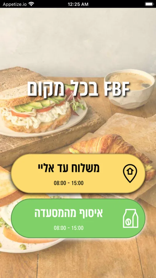 מסעדת FBF מציעה מגוון רחב של מנות טעימות במיוחד כמו: ארוחות בוקר,ירקות, פירות, כריכים, טורטיות ועוד. מחכים לכם לחוויה מהנה, שיהיה בתאבון !