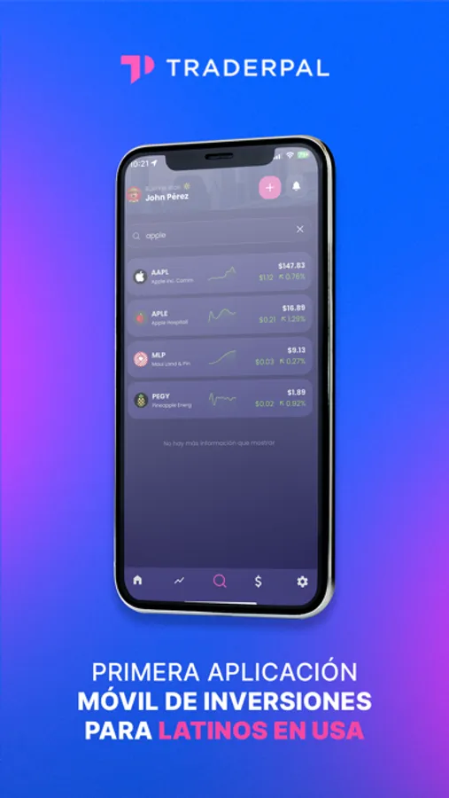 TraderPal es una aplicación de trading que tiene un amplio catálogo de acciones de las compañías más importantes que cotizan en las bolsas estadounidenses. También cuenta con ETF´s.