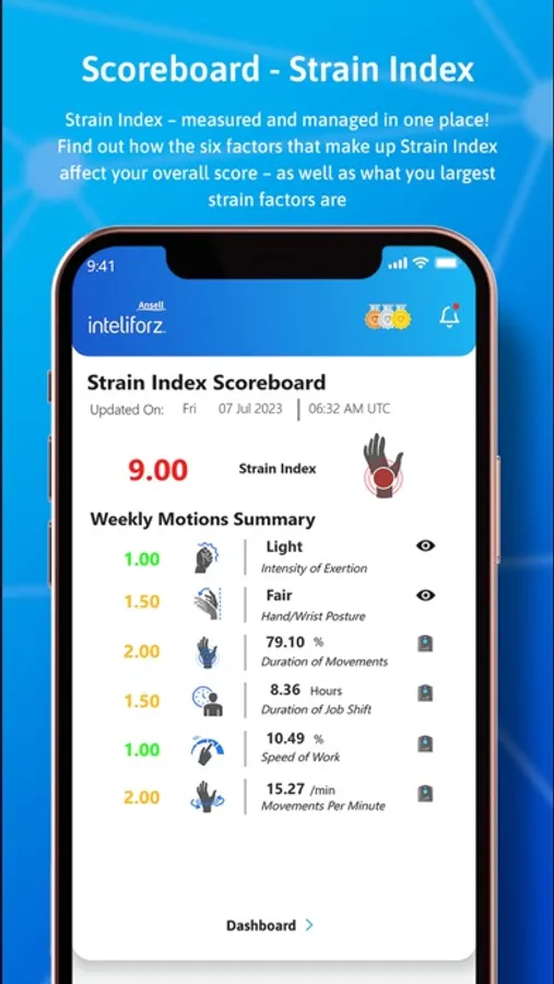 The Motion Series mobile application provides employees using the Motion solution access to their own personal motion insights, personalized Strain Index score, and a workforce engagement leaderboard.