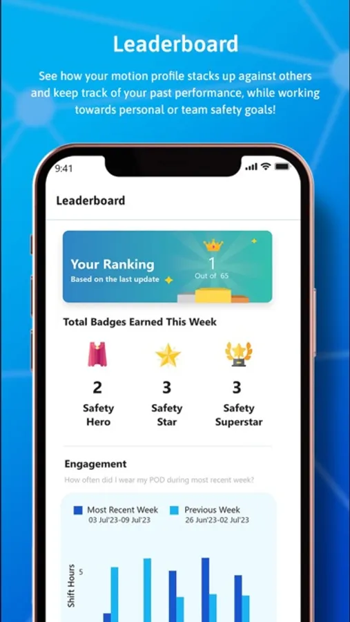 - A Leaderboard that enables you to see your motion profile while working towards organizational and personal safety goals