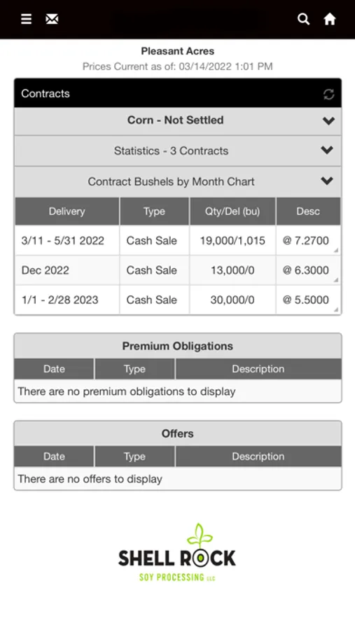 Monitor cash bids and markets plus track scale tickets, contracts, and settlements all from your mobile device. Available for growers to download and use at Shell Rock Soy Processing.