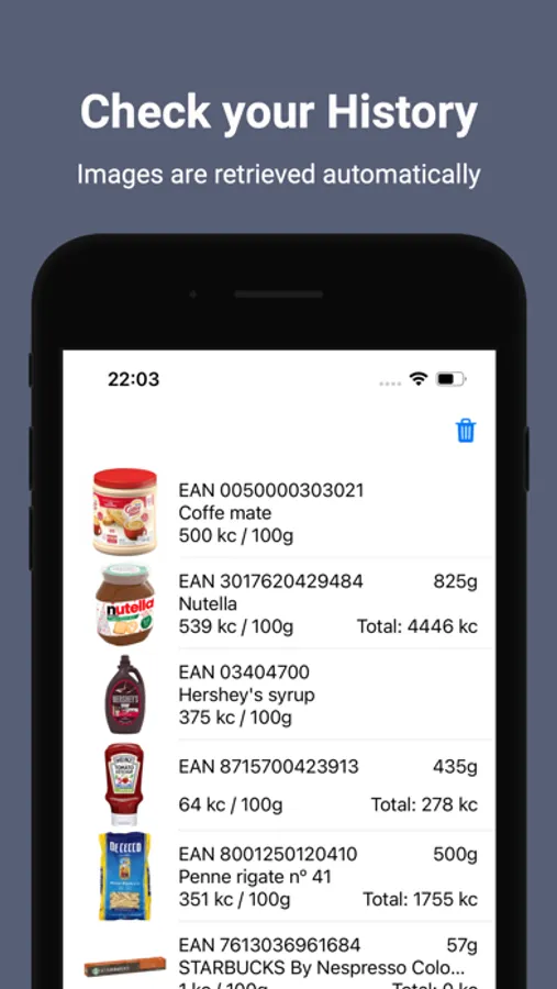 The caloric density of the food you scanned will be indicated, and the total calories of the product, when it is available.