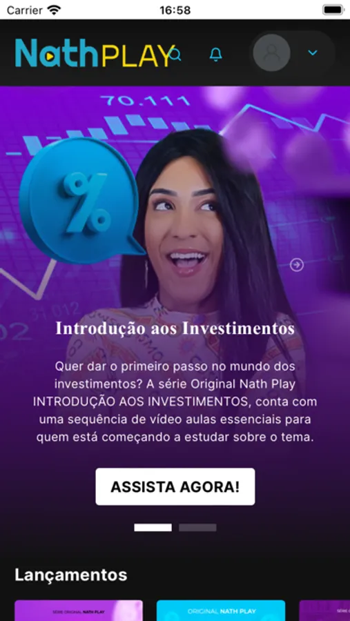 Além disso, com as assinaturas premium e master, a fóruns de dúvidas e a mentorias sobre finanças e investimentos com a Nath Finanças, caso seja um assinante premium ou master.