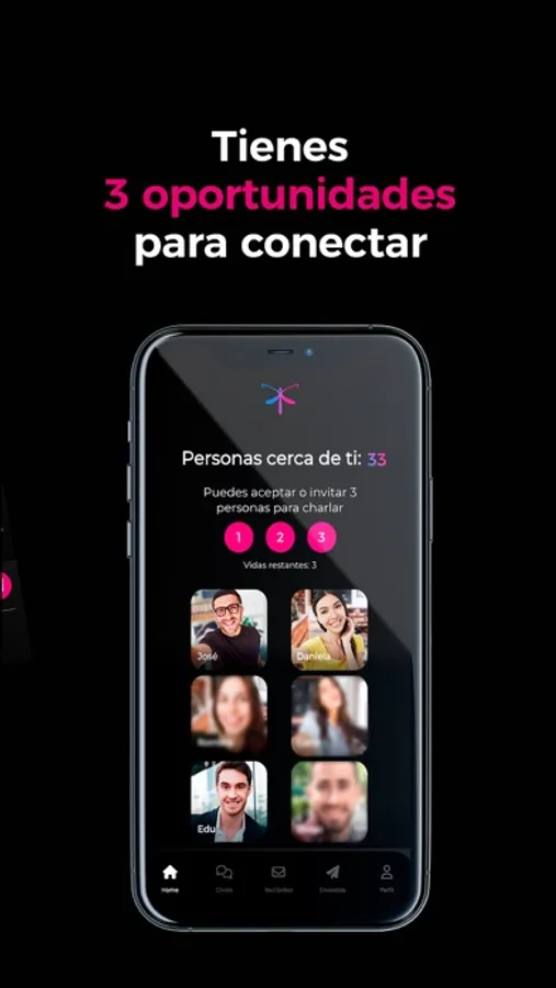 5. Chatea con hasta 3 personas por cada activación, concentra tu interés en conocerlas mejor.